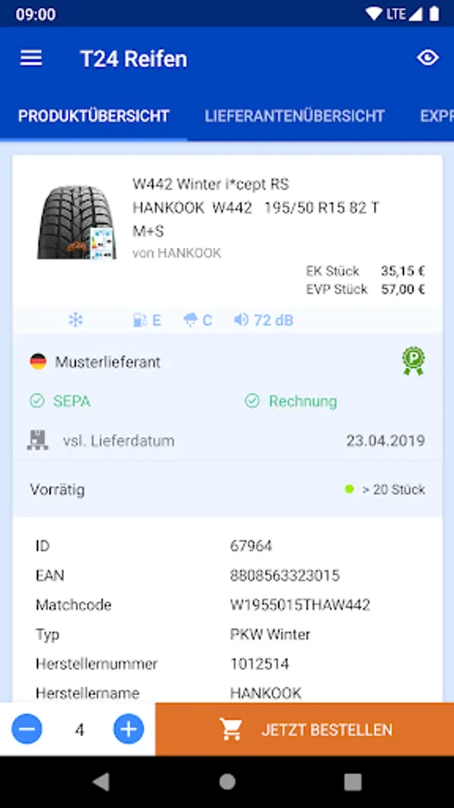 Are you on the road and urgently need a tire for your customers? No problem! Because with our app you get mobile access to the entire Tyre24 tire range. That's over 2,000 suppliers from all over Europe who offer more than 250,000 tires on our marketplace.