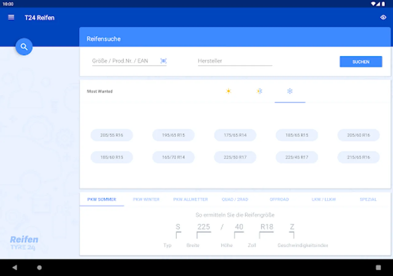 To use it, you need full access to Tyre24, which you can apply for at https://tyre24.alzura.com/. This service is aimed at traders only.