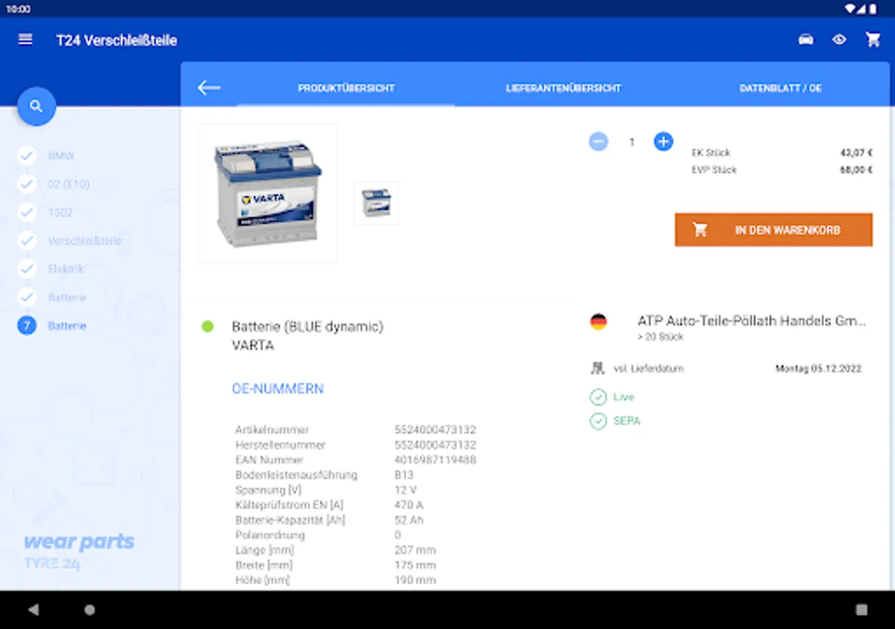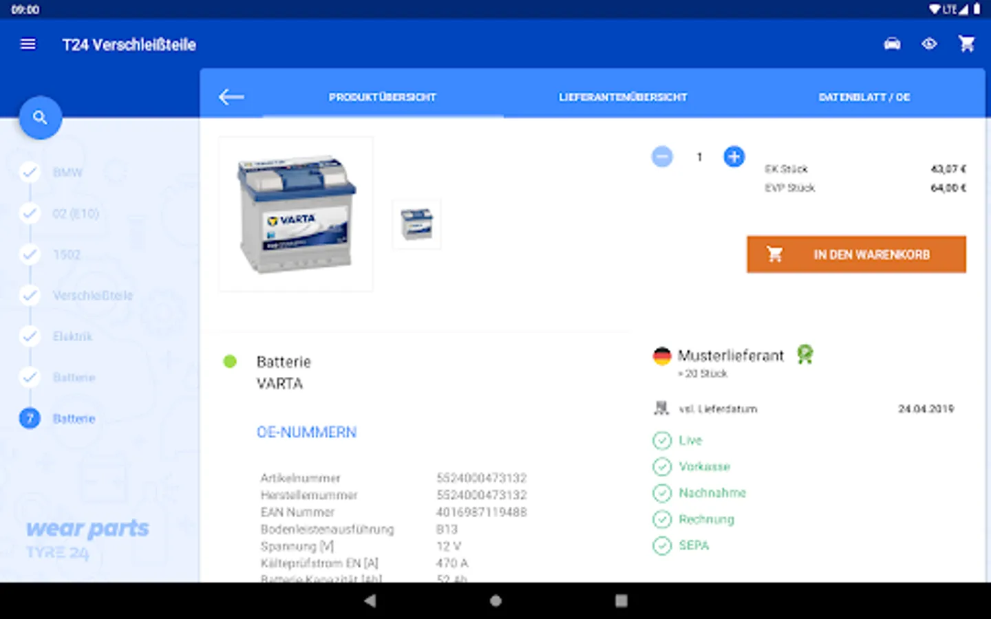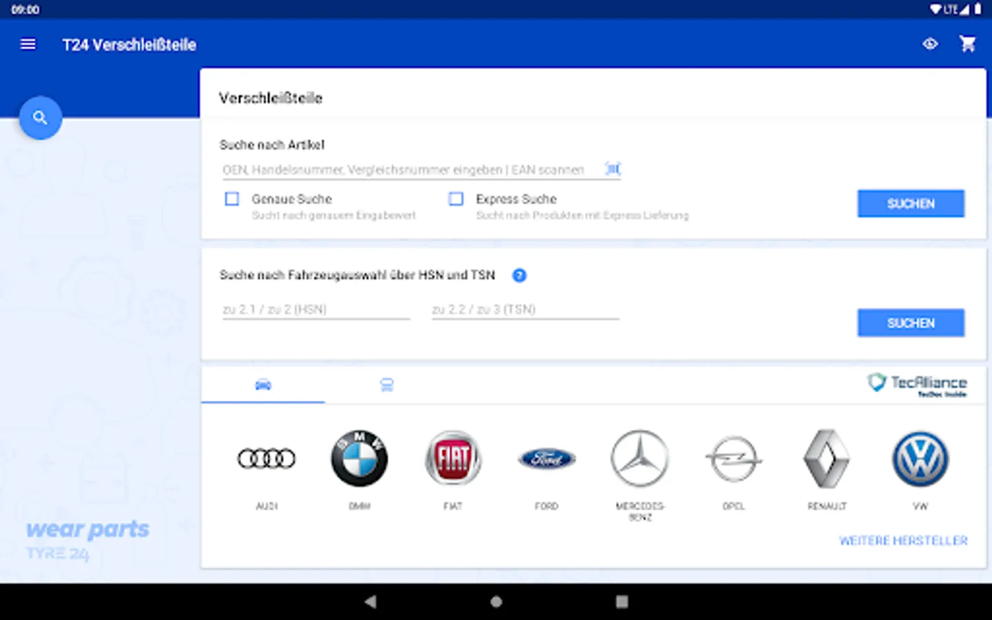 No problem, because with our app you get mobile access to the Tyre24 database of over 2000 European suppliers who offer millions of products in our marketplace.