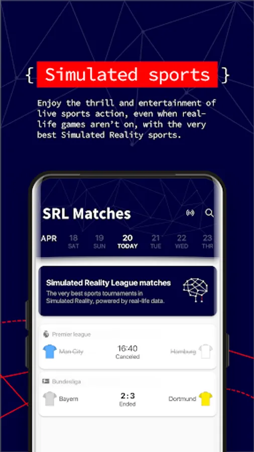 • Simulated Reality League - Our Simulated Reality League lets you continue to enjoy the excitement of live sports, even when the real games aren’t on. This is your chance to complete the current football seasons of all major competitions in England, Germany and Spain with all remaining fixtures scheduled to be played as per their original date and kick-off time. More sports to come!