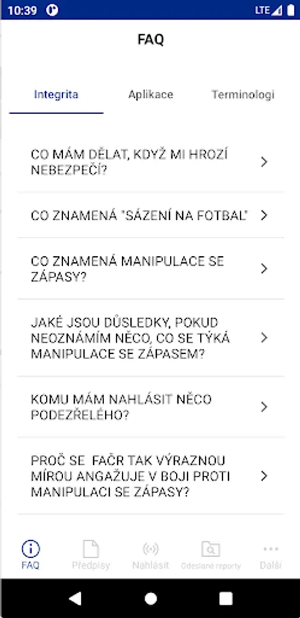 FAČR Integrity Screenshots