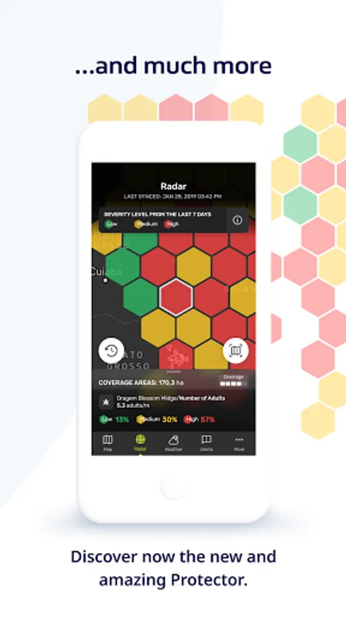 With Protector, growers and agronomists have mobile access to the most important agronomic indicators and insights. With powerful analysis and visual panels, the information collected is instantly accessible to the grower for faster and more accurate decision making. A combination of graphs and map visualizations provide both summary and detailed views of the pest pressure, crop evolution, weather data, etc.