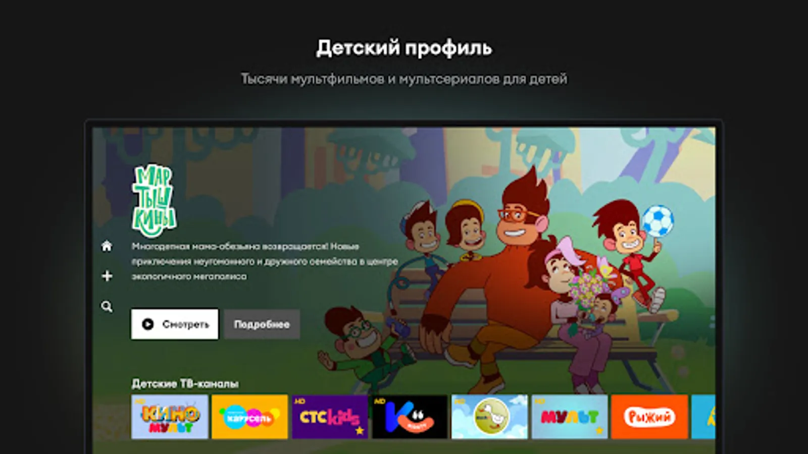 A reliable children's profile for the youngest viewers. Set up children's channels, music programs, and educational animated series for your child.
