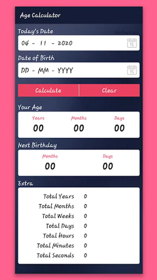 Finding difficult to calculate your exact age in years, months and days from your date of birth? Use this amazing Age Calculator app to calculate your exact age in years, months and days and even seconds using your date of birth.