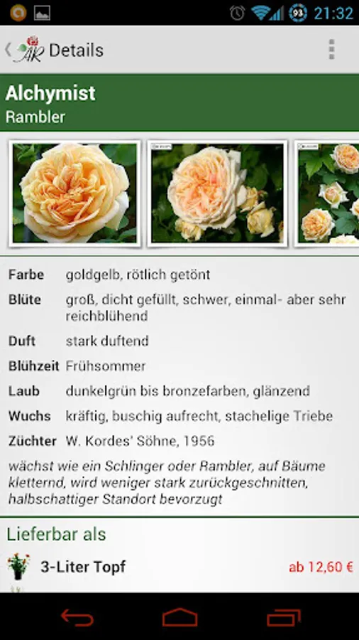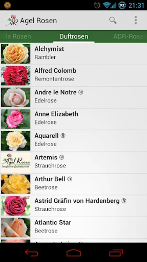 Browsing through over 1000 Modern- & Old Roses with the first Roses-App for Android. Lots of pictures and variety descriptions take you into the world of roses.