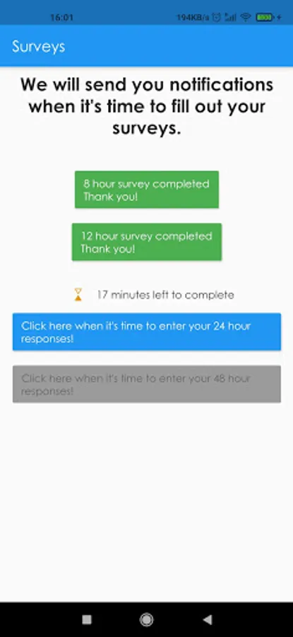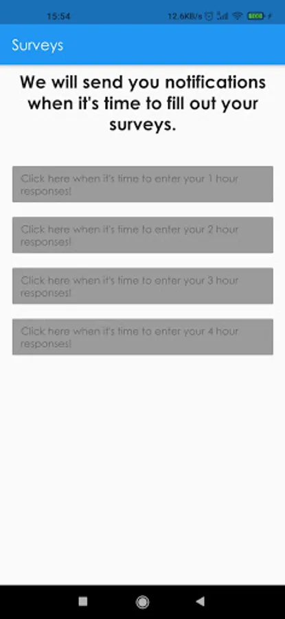 The app is to be used in a market research test where users need to complete tasks (questionnaires) after a certain amount of time has passed since applying a deodorant. The app serves as a reminder tool so users can be notified when a task is due, how long they have to complete it, and are linked to complete the task on an online platform