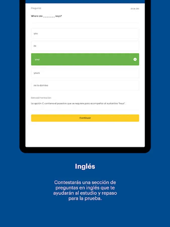 With this tool you can learn and reinforce knowledge, where, case by case, you will be given feedback for your knowledge. At the end of the application you will have answered the equivalent of more than nine entrance exams.