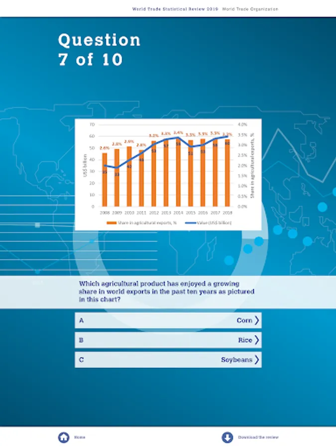 The Annual Report summarizes the WTO's activities over the past year and provides detailed information on the organization's structure and budget. The World Trade Statistical Review provides a statistical analysis of the latest developments in world trade. The World Trade Report focuses on a particular theme, with the aim of deepening understanding about trends in trade and trade policy issues.