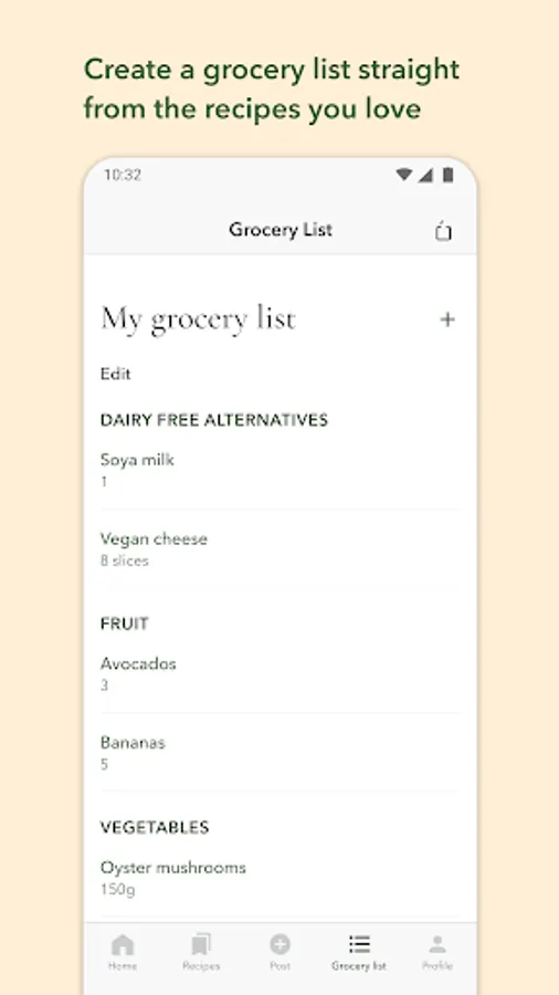Easily generate your weekly grocery list by either adding ingredients straight from the recipes you plan to cook, or simply entering the ones you’re missing.