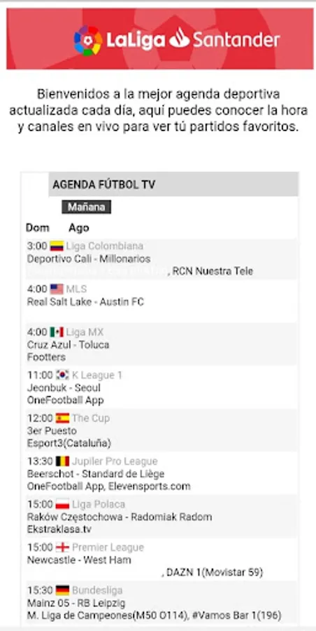 The Agenda is a free application that shares the upcoming matches of your favorite team along with the established schedules as well as the channels so that you can enjoy them live.