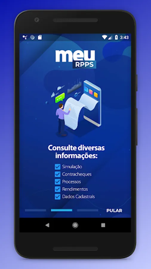 Meu RPPS is an application aimed at policyholders of the Social Security System, covering permanent employees, retirees and pensioners, allowing access to some services according to the category, such as: