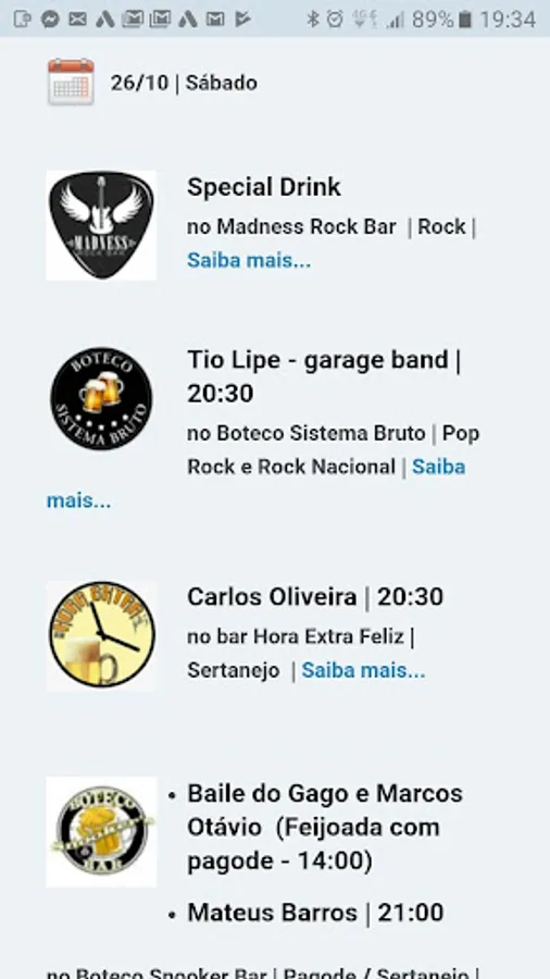 By locating the schedule that suits you, the user can have more information in the link learn more ... and can also visit the pages managed by the bar or nightclub itself.