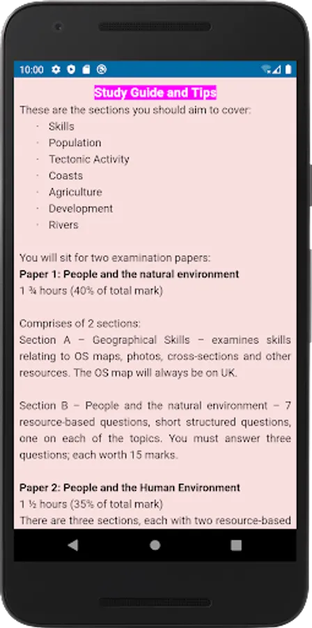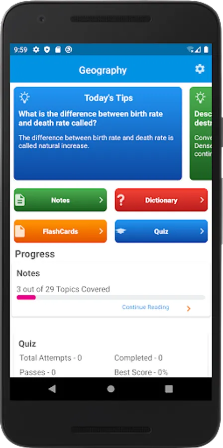 GCSE Geography notes, multiple choice questions & flash-cards in an small, offline app.