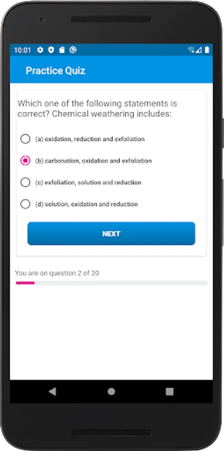 - Multiple Choice quiz with in-app-marking and score statistics.