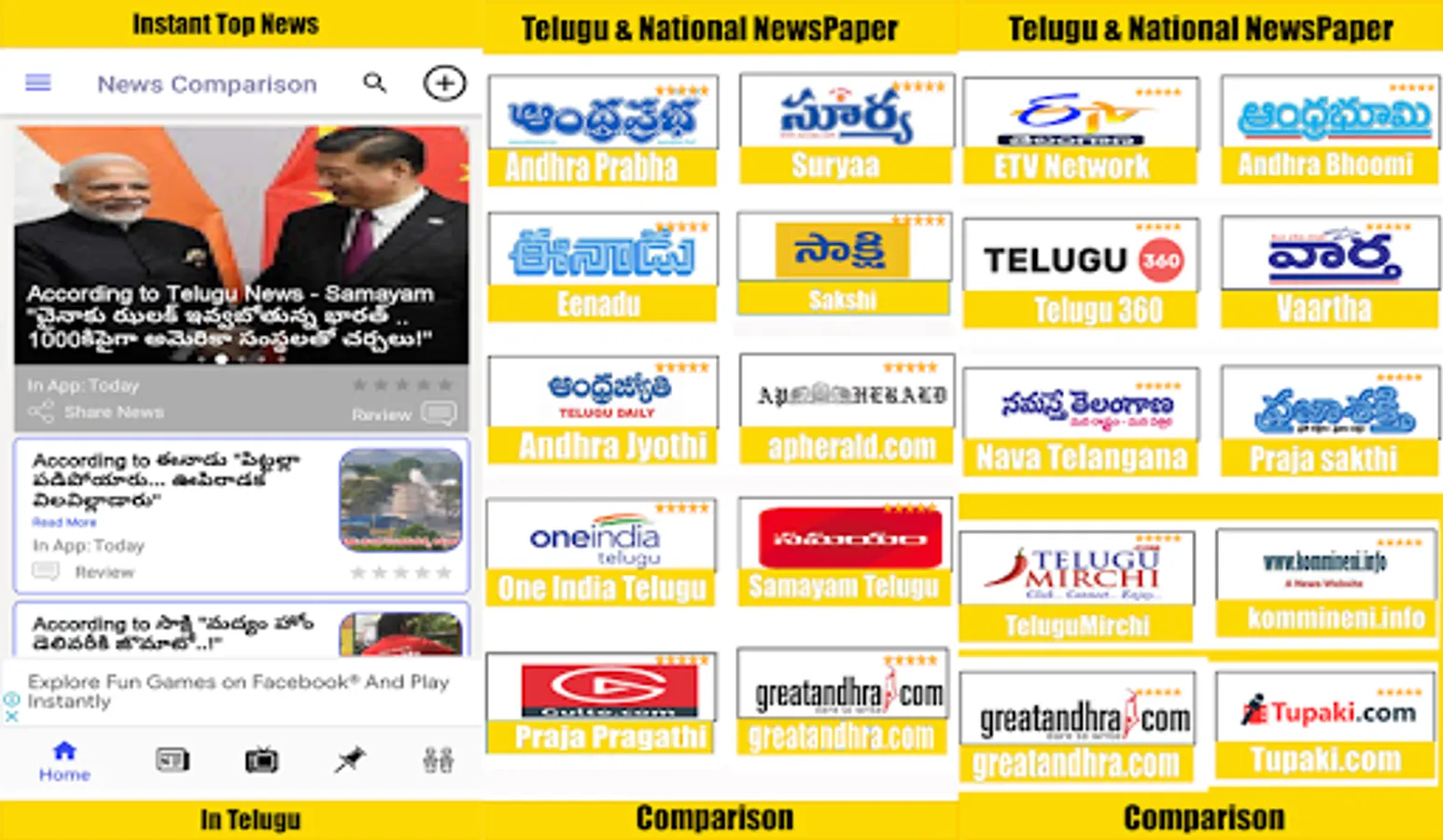 And by using it, you can read news and analyze Telugu newspapers and Telugu News Live TV, and compare News Reliability by comparing it with each other.