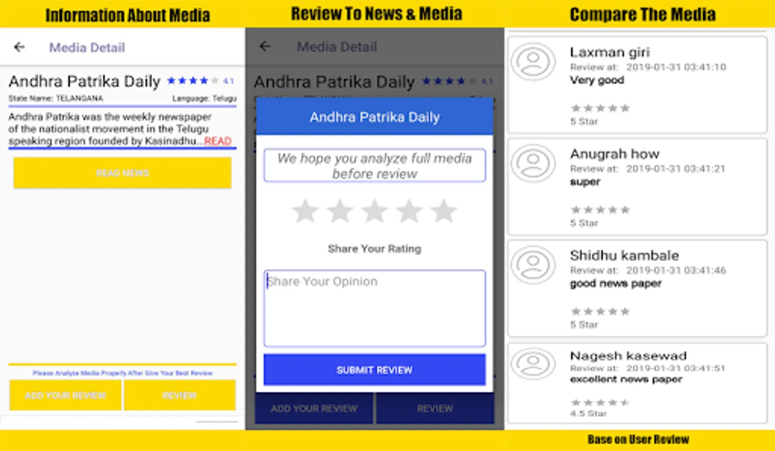 The Telugu News Paper App provides a review and ranking feature for both the Andhra Pradesh News Aggregation and the AP News media Aggregation as well as the national and regional News Aggregation.