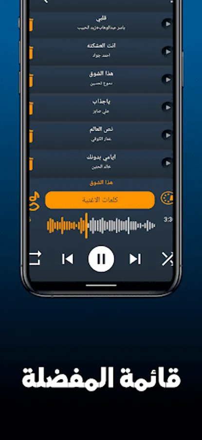 In the application there are many famous Iraqi songs such as the artist Saif Nabil, Jaafar Al-Ghazal, Nour Al-Zein, Yasser Abdel-Wahhab and Zaid Al-Habib. You will also find many distinguished artists.