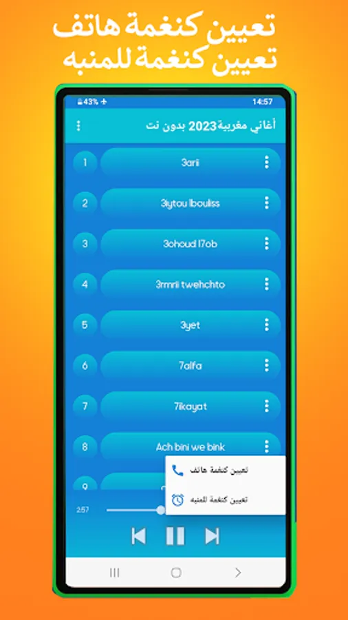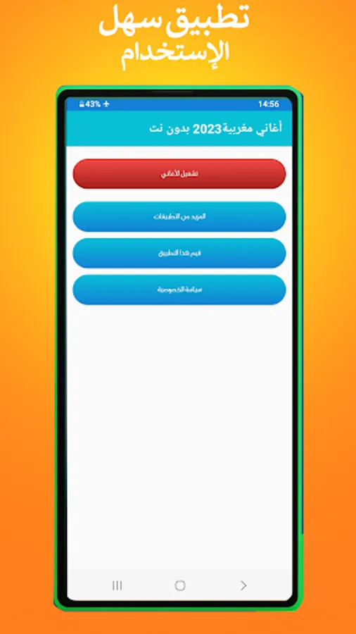 If you are a fan of Moroccan songs, this application was designed for you, an application that contains the latest songs that everyone is looking for, this application contains approximately 100 songs, and the beautiful thing is that it works without the need for the Internet