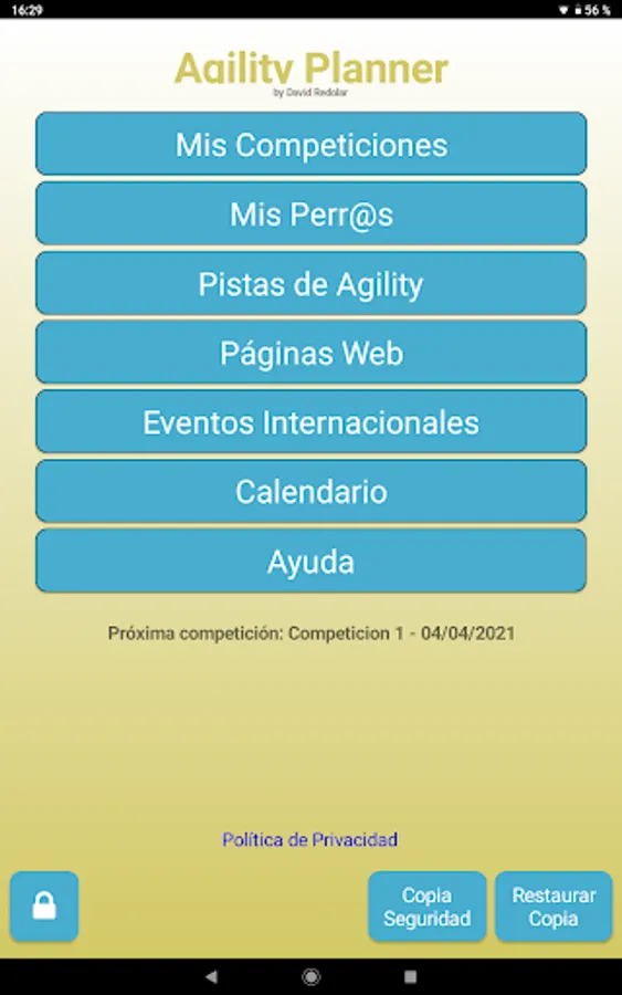 Personal diary for Agility. Calendar, competitions, results, achievements, agility tours, web links, photo and video gallery, are some of the options that Agility Planner has. It is a tool designed for the world of agility