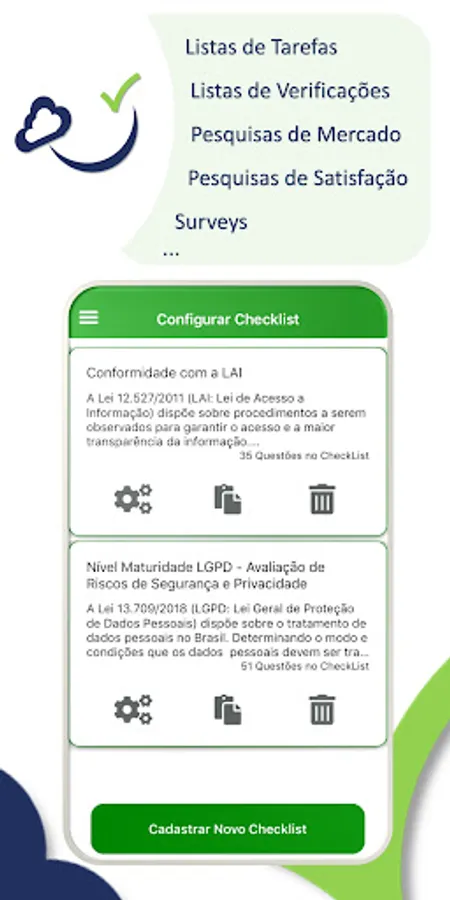 As an example, AgilCheck already comes with a checklist containing a list of questions to ask your company in compliance with Law 13.709/2018 (LGPD: General Law for the Protection of Personal Data).