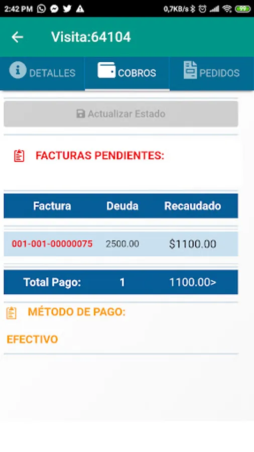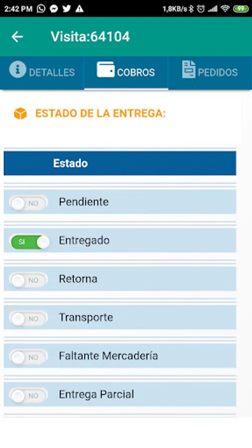 Mobile application for logistics management with assignment of visits, real-time deliveries, warehouse transfers, customer georeferencing. A CRM on the mobile of your agents, notifications in real time, client portfolio inquiries and collections in real time, digital signature, photos in deliveries and visits, Connect through our API with your favorite ERP: SAP, QuickBooks, Microsoft Dynamics, etc.