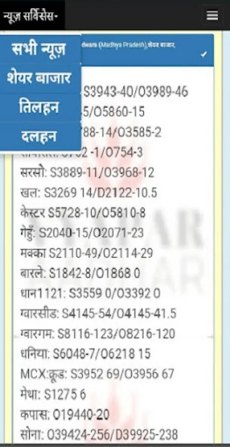 जिंसों की विभिन्न गल्ला मंडी के भाव की जानकारी |