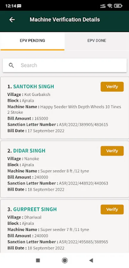 A login-based mobile application has been developed for the agriculture department officials. By using their provided credentials they can easily access the application anywhere anytime and perform the physical verification of machine. Physical verification of machine is the process where beneficiary buy out the machine from manufacturer/vendor and the same is verified by the department officials by uploading the details and photograph of the machine. All the policies and the details have been affiliated by the government of punjab.