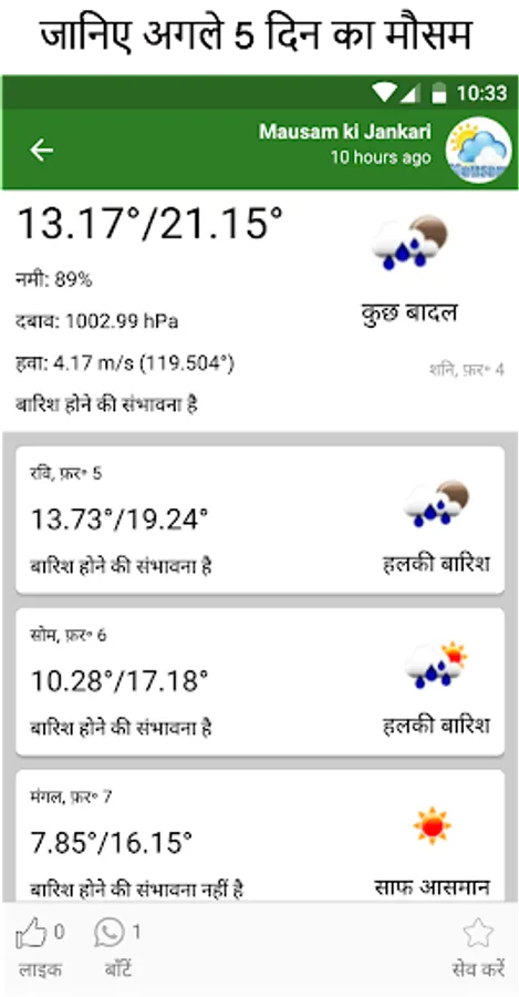 Mausam - Kisano ki suvidha ke liye iss agriculture app mein aap agle 5 din ka mausam ka forecast bhi dekh sakte hain.