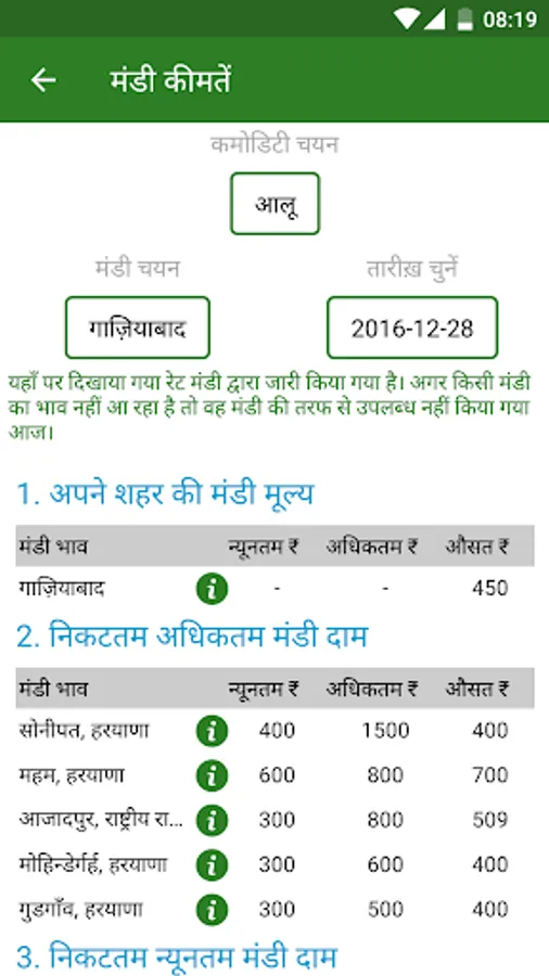 -Check latest Market/Mandi Prices of any commodity in this agriculture app - Farmer can check latest mandi prices of any crop like - paddy (dhan), wheat (gehu), maize(makka), potato etc to over hundreds of crop varieties all over India.