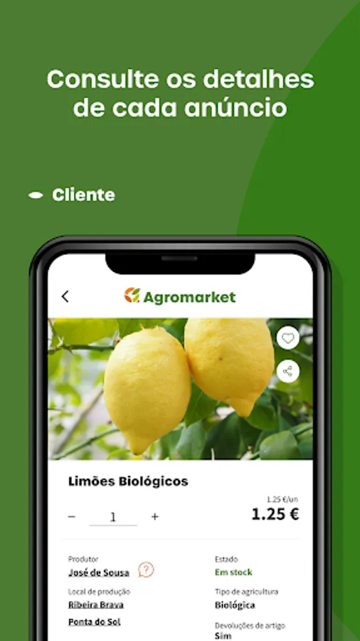 An application that gives farmers the opportunity to take Madeira's agricultural products further, with tools that bring them closer to their customers and with features that facilitate the entire sales, payment and shipping process.