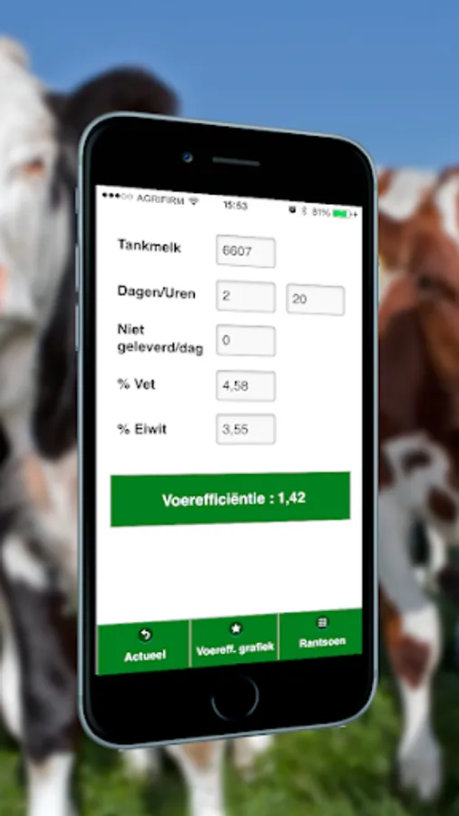 You have direct insight into your latest milk tank data, milk control and feed balance. Thanks to the insights you get with the app, you can switch the ration in time and you have the results at your fingertips. You can also easily calculate your feed efficiency in the Agrifirm Focus Dairy Cattle app. An increase of 0.1 point in feed efficiency yields €30,000 on a farm of 100 cows. It therefore pays to calculate your feed efficiency and, if necessary, improve it. That is why Agrifirm Feed has developed a calculation program with which you can easily calculate and keep track of the feed efficiency yourself. The result? More milk from feed!