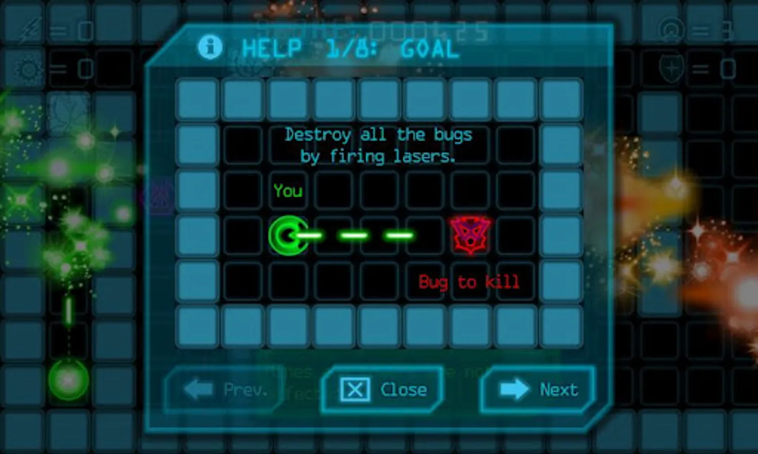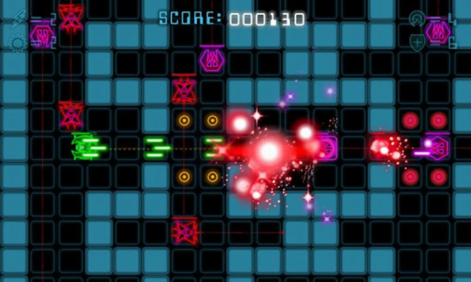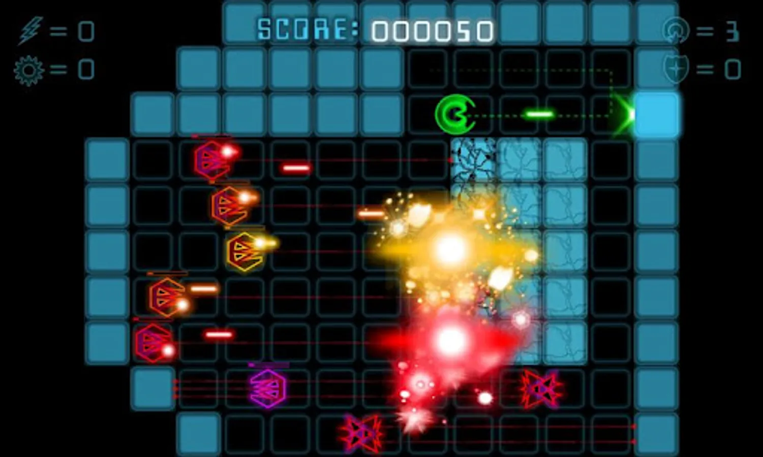 Fight your way through a maze of drone: Defeat enemies to progress, Collect Power up to upgrade your ship.