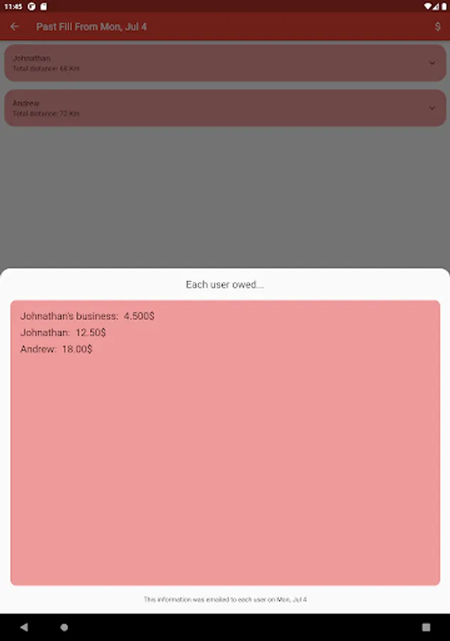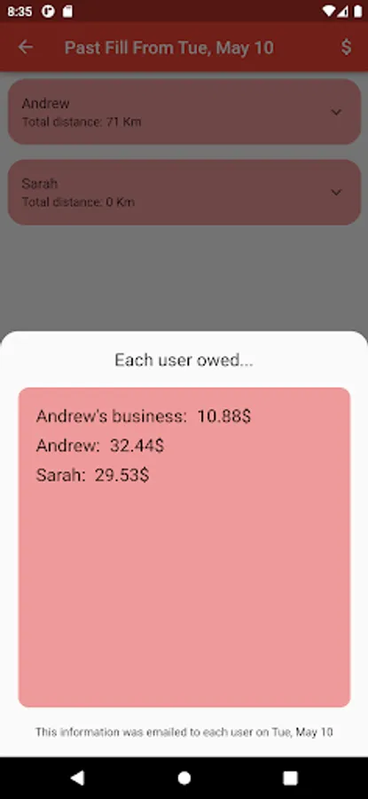 Our goal is to help you calculate how much everyone owes for gas by calculating the percentage of mileage per person on each fill. Enter personal drives, business drives, and split drives! When you fill up, Gas Split will email each member of a group how much they owe you. These reports will also outline how much your business owes for gas, based on your business entries!