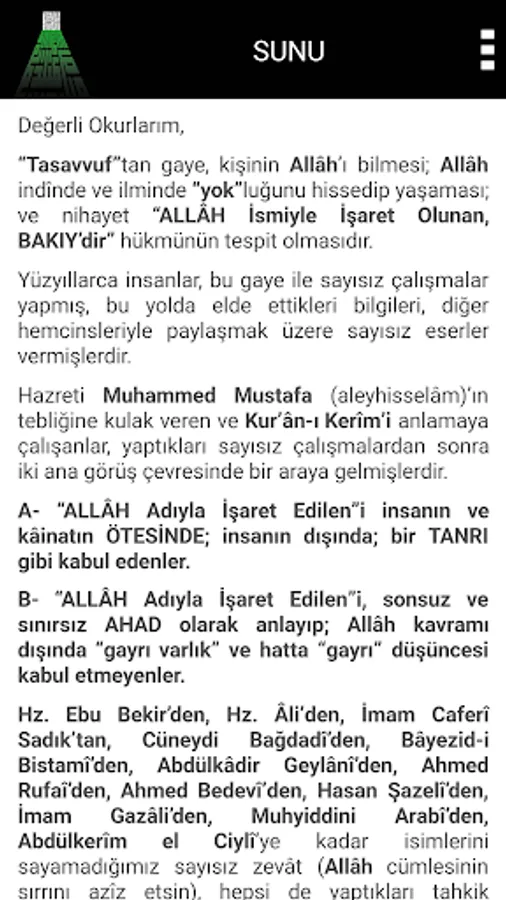 "Unity" topic, a great deal from the first Imam Ghazali, he A'zam Abdülkâdir Ghawth-Gailani Holiness "Ghawth treatise" explained the work is ...