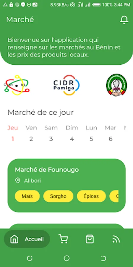 Marché is the application that provides information on the markets of Benin and the prices of local products.