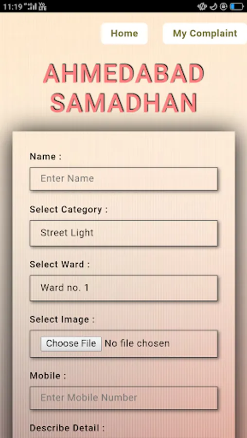 Ahmedabad Samadhan is an online complaint registration app developed for citizens of Ahmedabad Cantonment.