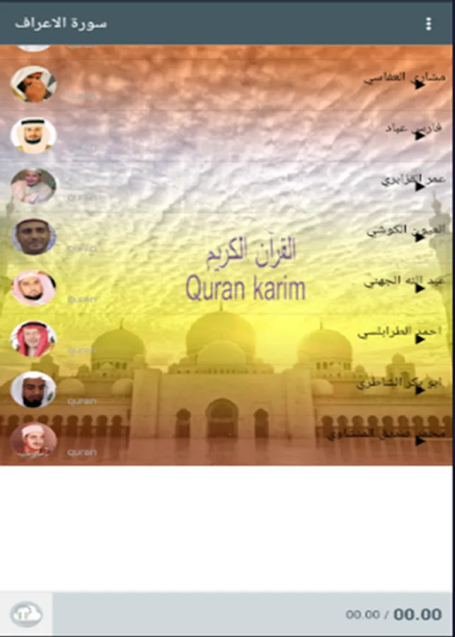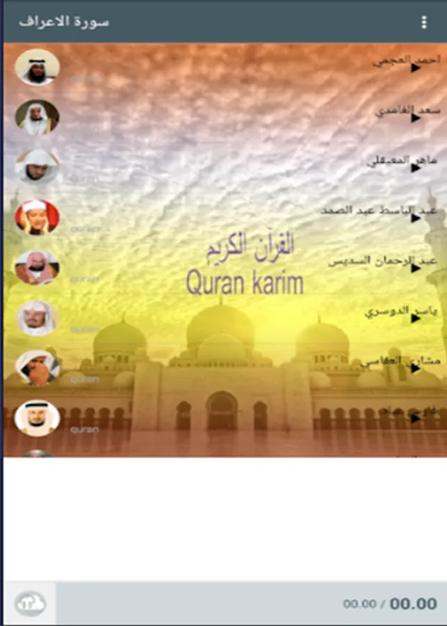 Surat Al-Aaraf is an application that features a screen that enables you to choose your favorite reciter to listen to