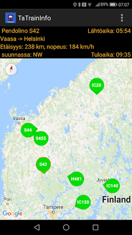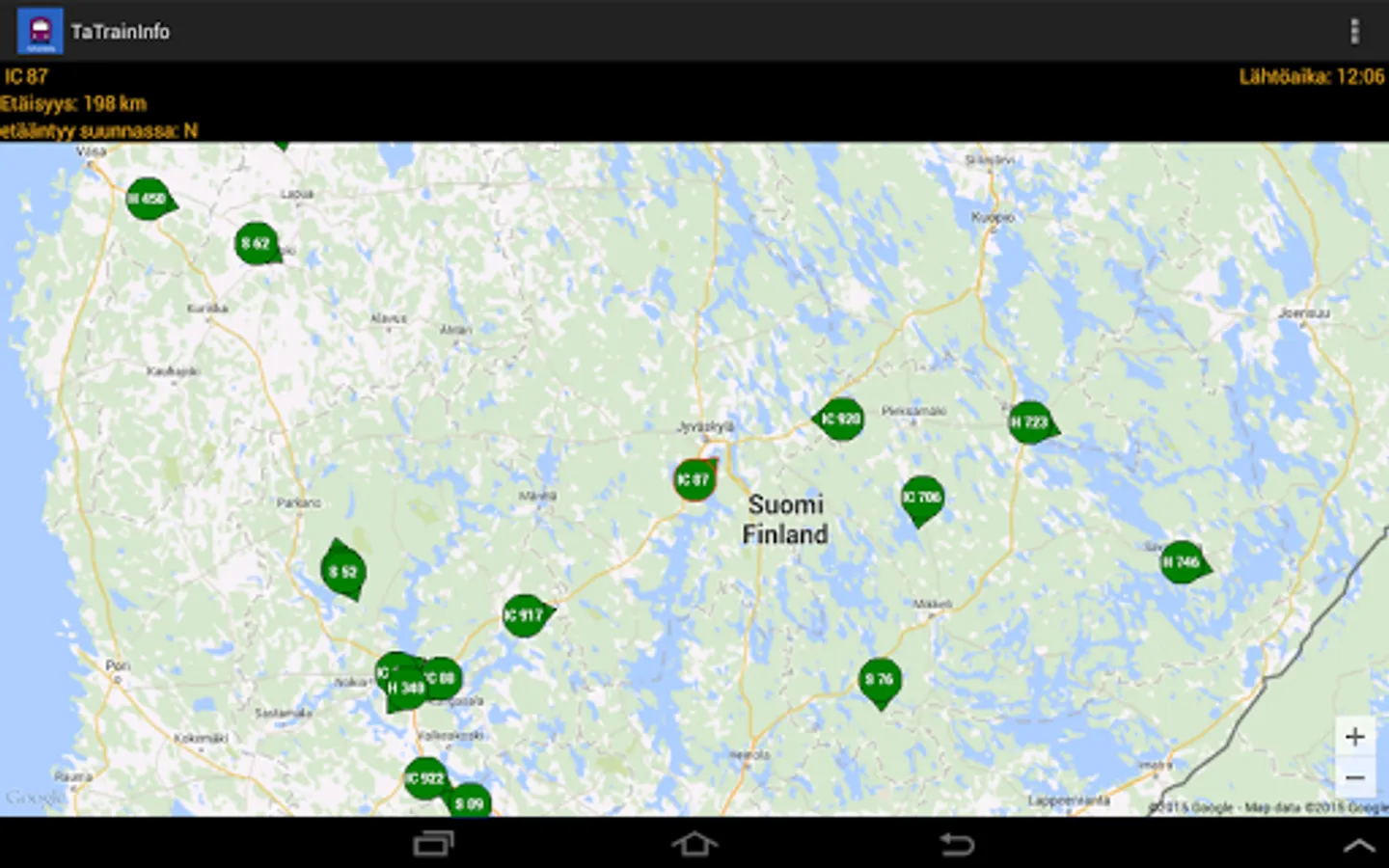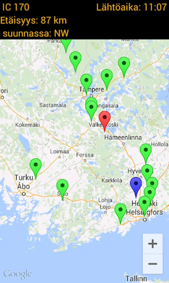 Aside train is shown for example as additional information. train number, time of departure and the distance and direction to the device, if the user's GPS location is known.