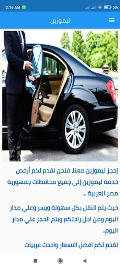 Limousine reservation anywhere in the Arab Republic of Egypt.