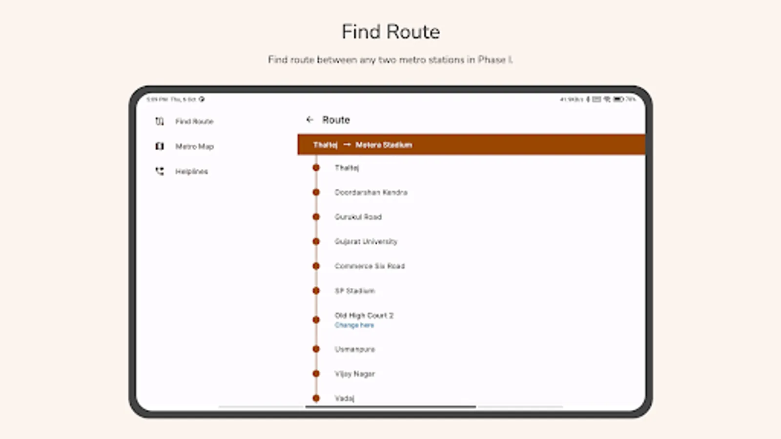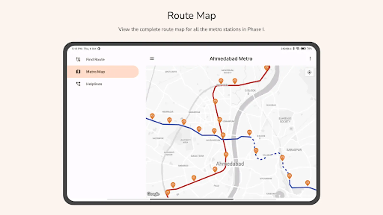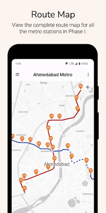 The Ahmedabad Metro app also offers the entire route map as provided on the official GMRC website. This map will help you get a better idea of all the stations within Ahmedabad.