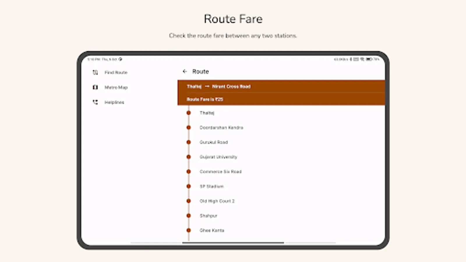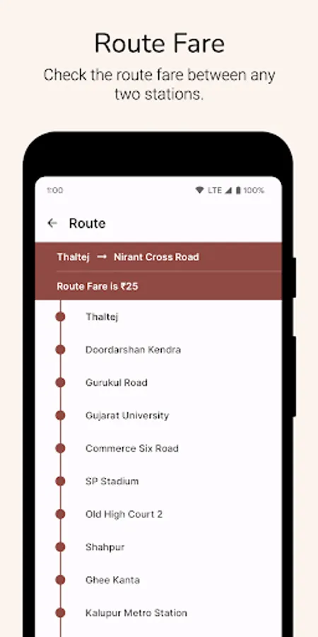 Check the route fare between any two stations. The minimum route fare is ₹5 and the maximum is ₹25.