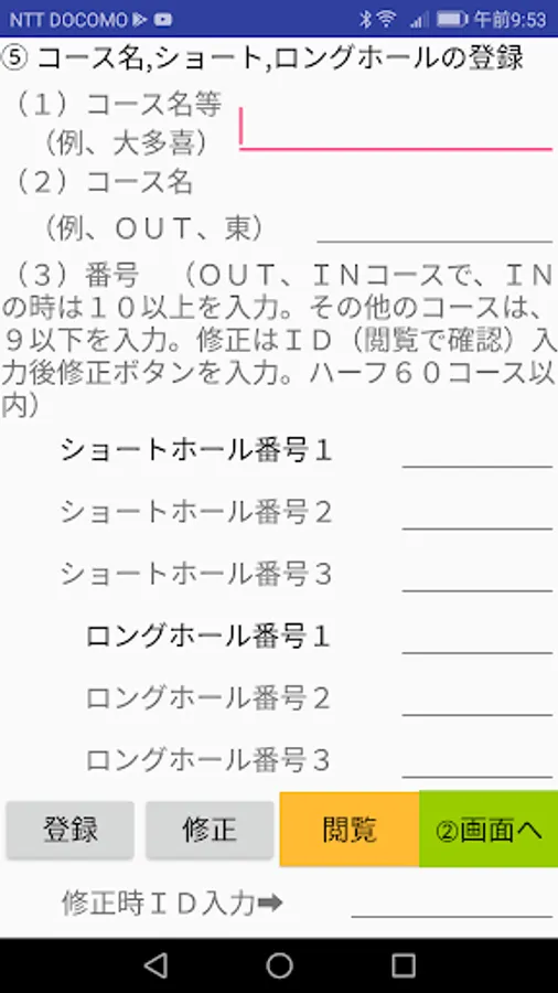 ● ➅ screen (golf course) course name, short, long hole registration list screen