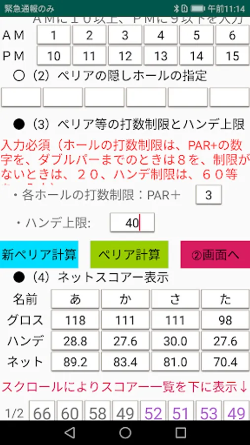 ・ Enter 6 holes in the morning and 6 holes in the afternoon (corresponding to the app that can be entered with out and in numbers).