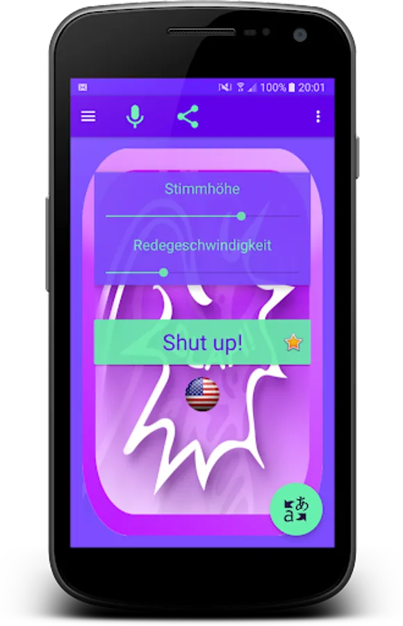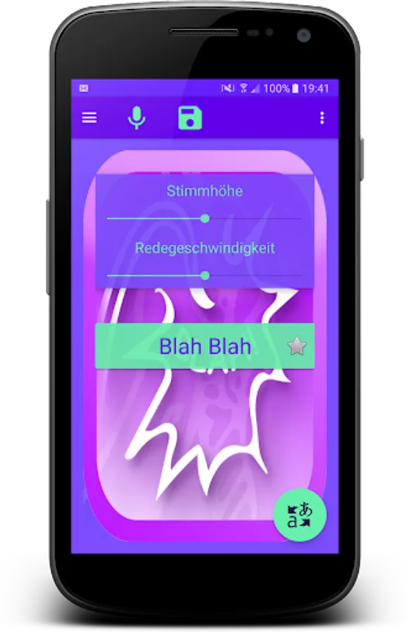 Type anything you like in a Text Field or use the microphone to capture speech. Make a whip movement with your device to make your phone talk.