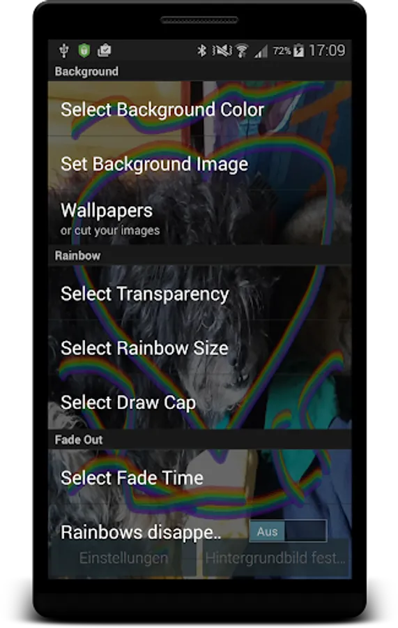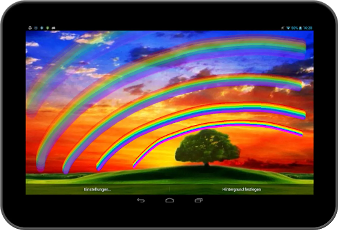 Amazing live Wallpaper which follows your touch and draws beautiful rainbows in the background.