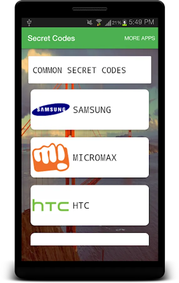 Samsung, LG, Lenovo , Micromax , Sony , HTC and Common codes for all android devices.