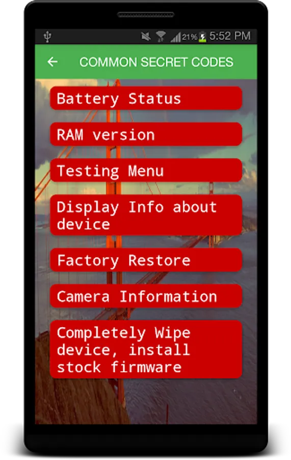 Some Manufacturer not allow the use of this secret codes therefore they may not work on your device.