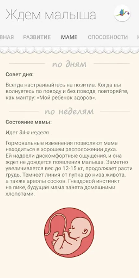 Soon another person will appear in your family? Congratulations! Now, future parents will be able to follow the development of their baby directly from their smartphone with the application “Waiting for a baby”. The program has detailed information about the development of the child, his health, advice to mom and much more.