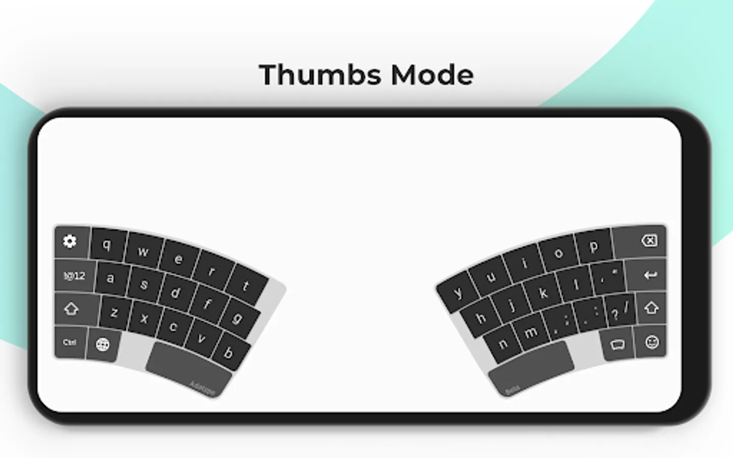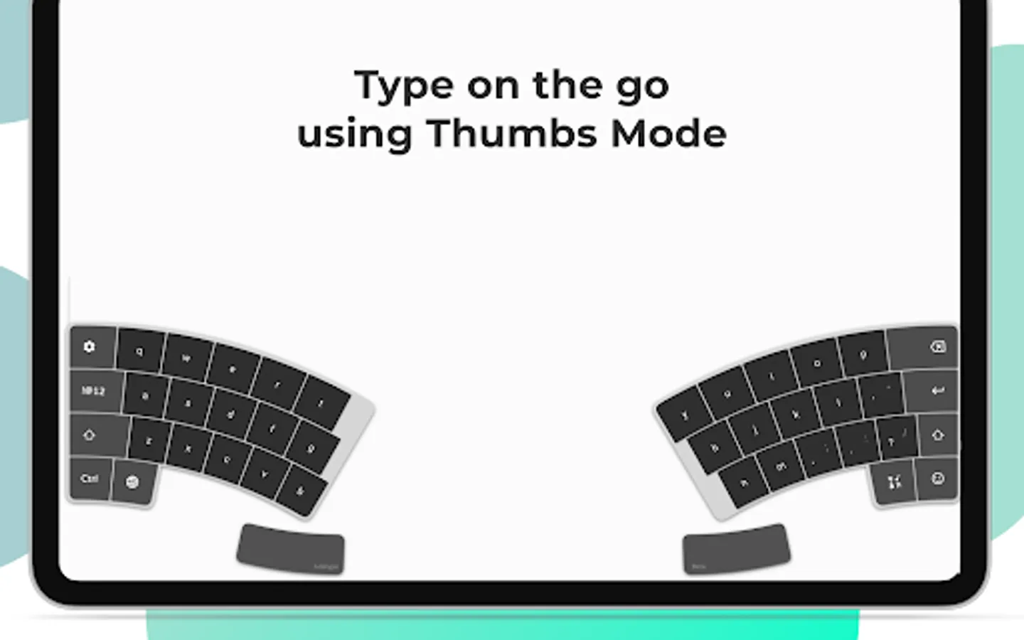 Split keyboard for typing on the go. Perfect for tablets, and a great landscape keyboard for phones.