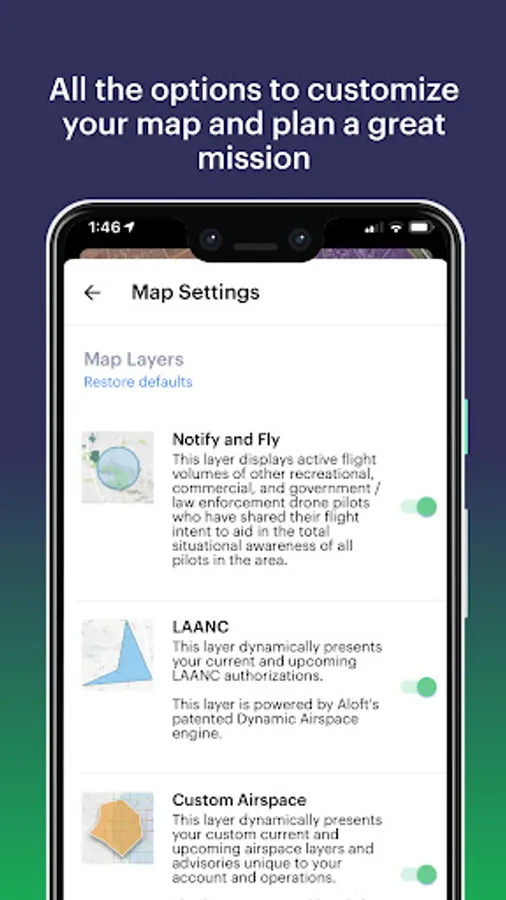 - Check airspace and weather with Aloft Dynamic Airspace